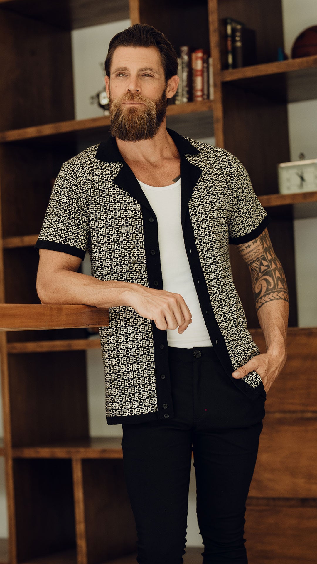 Camisa John Leopard Mao Black & Gold Metal Emblem Slim Fit
