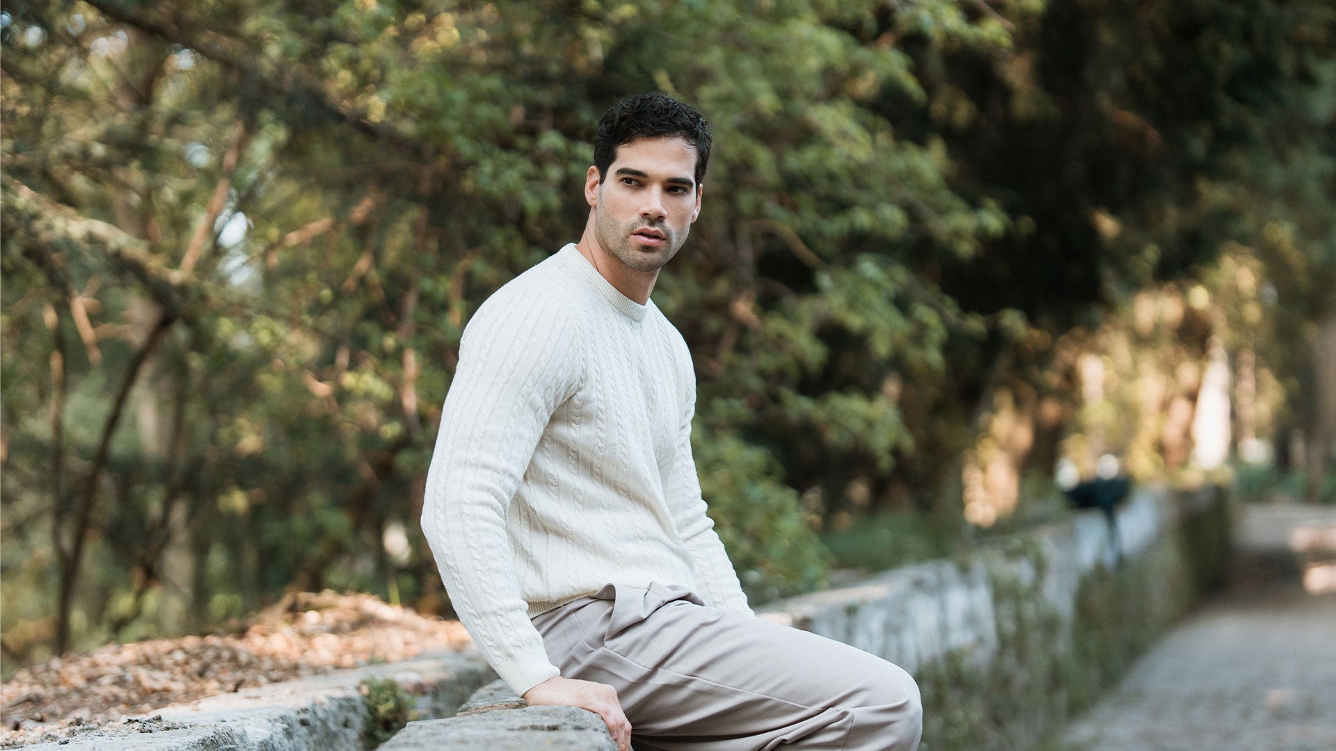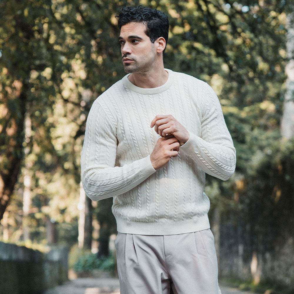 Crewneck Cable Knit Sweater Raw Cream